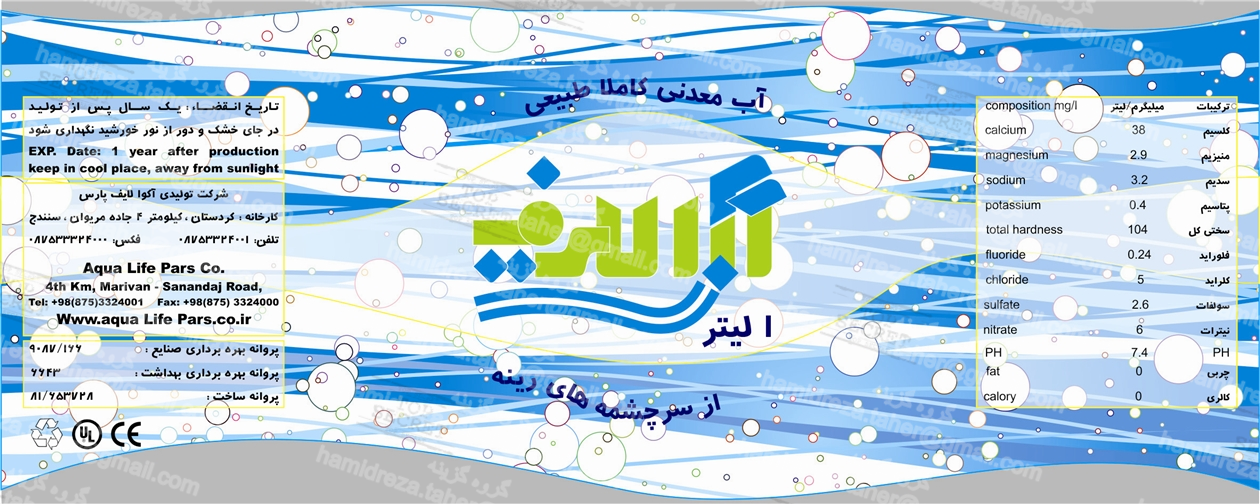 لیبل بطری های آی معدنی آکوا لایف